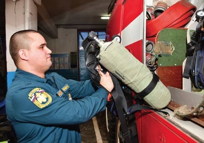 Уже более полутора лет Максим Кобяшев — самый молодой в карауле — осваивает тонкости пожарного дела под руководством опытных наставников, многие из которых трудятся в профессии по 30 лет.