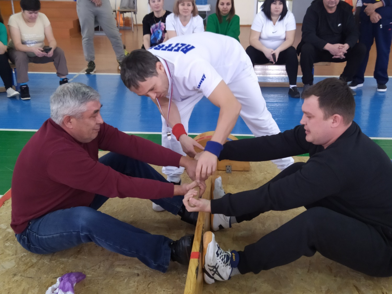 Сегодня в Физкультурно-оздоровительном комплексе «Юность» прошли соревнования по мас-рестлингу в рамках «Декады спорта и здоровья». Проводились они в зачёт Спортивных игр района среди предприятий, организаций, учреждений Янаульского района. Заявки были приняты от 7 коллективов: оператор питания «Школьник», ПЧС-113, администрация района, детский сад №7 «Колокольчик», и детский сад №15 «Дельфин», ПНИ, НЭС. По положению состав команды должен состоять из 2 мужчин и 2 женщин. Многие из участников впервые пробовали свои силы в таком виде спорта, волновались, переживали друг за друга. Тренер спортшколы «Юность» Руслан Муллахметов объяснил правила якутского спорта, так же перед каждым поединком со словами «Белем» («Давай начнем») и «Чё» давал старт каждому поединку схватки. Соперники, так же по правилам, приветствуя друг друга, продолжили соревнования.