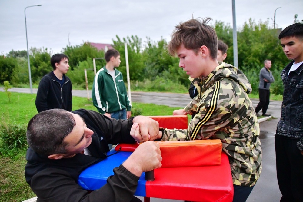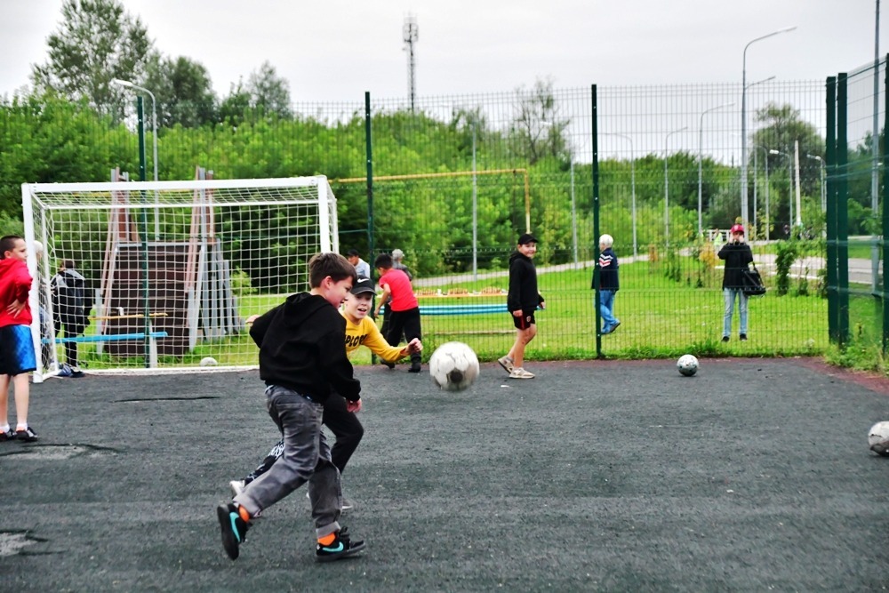 Так, в пятницу на территории сквера по улице Некрасова играли в мини-футбол, настольный теннис; выявляли самых могучих в силовых видах и т.д.