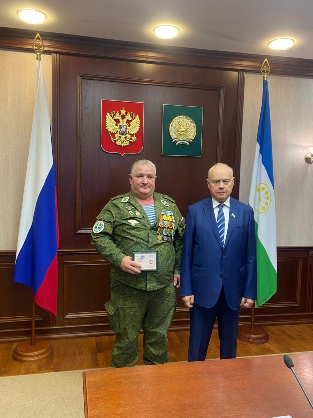 В числе награжденных – Динар Хусаенов, председатель ассоциации ветеранов СВО Янаульского района.
