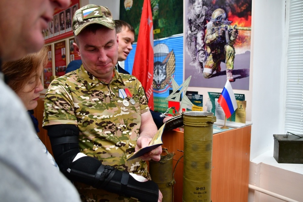 Следом в музее гимназии была презентована книга, посвященная боевому пути выпускника, отважного воина Ильяса Калимуллина (позывной «Коллиматор»).