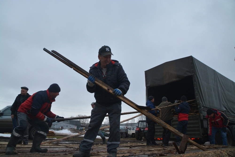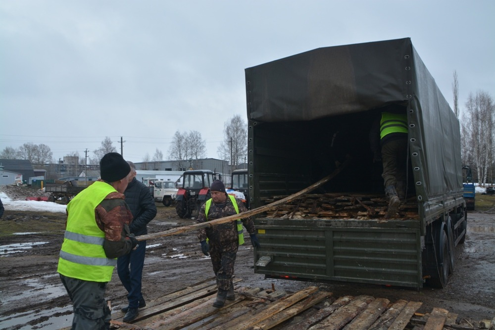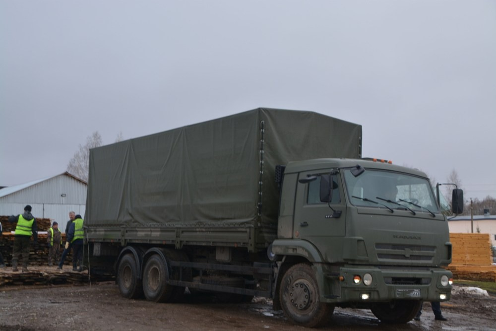 В Янаульском лесхозе сегодня побывал не совсем обычный гость – грузовой КамАЗ с черными военными номерами. В него местные работники при поддержке бригады коммунальщиков грузили пиломатериал – необрезанные доски. Всего примерно десять «кубов».